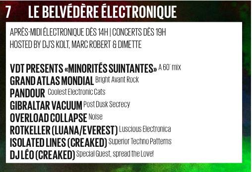 2012 – 2016Fête de la musique – Live electronic music at Le Belvédère, Fribourg (CH). Curated with Manuel Oberholzer, Benedict Rohrer and Bernhard Zitz.