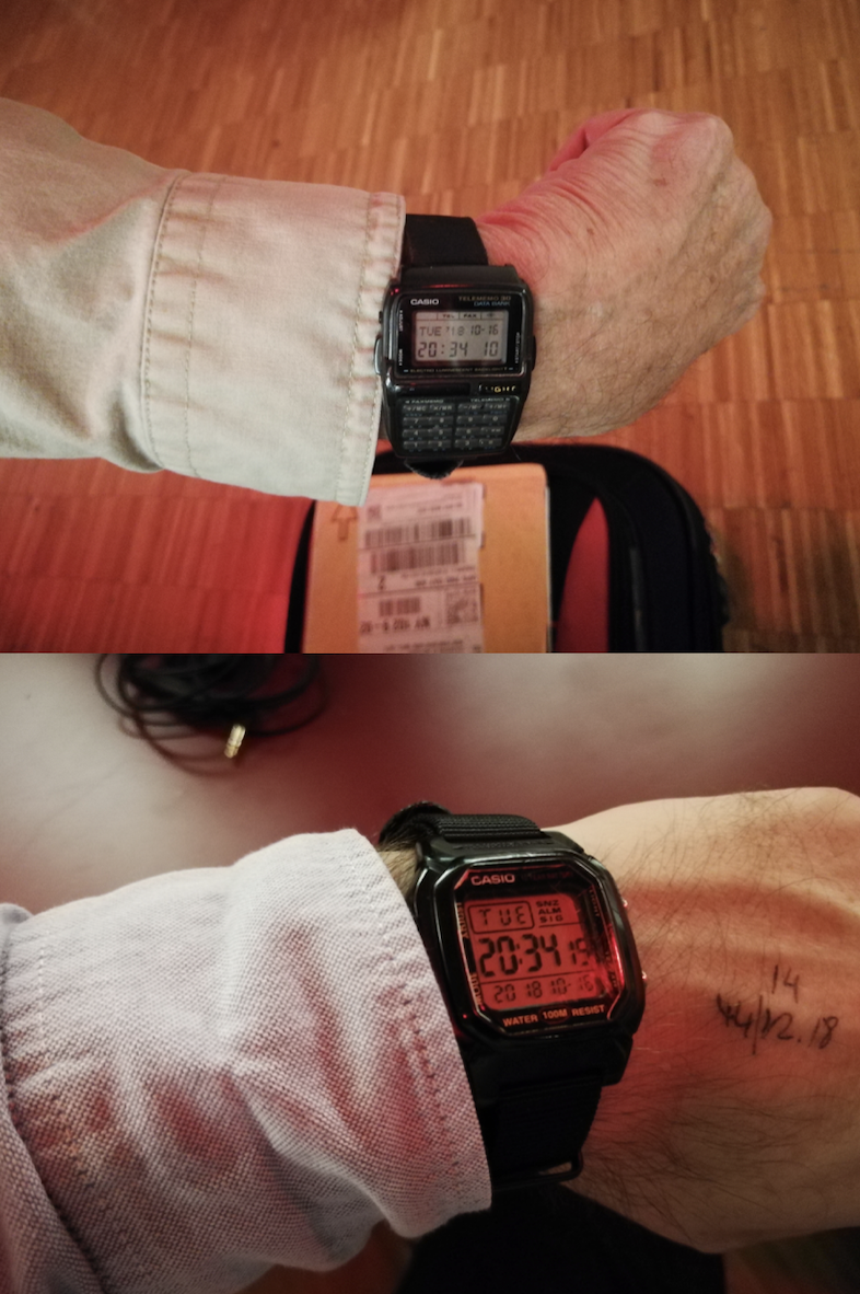Casio G-Shock GW-M5610U-1ER (with the rescue orange strap + bezel from the GW-M5610MR-4), 2025 // Solar-powered, radio-controlledCasio G-Shock GW-5000U-1ER, 2024 // Solar-powered, radio-controlledWith Phill Niblock at the Lausanne Underground Film and Music Festival, 2018🩷Casio W-800H, 2009Circa 1986Venice, circa 1984
